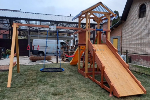 ОписаниеКупить Детскую площадку Савушка Мастер 2 (Махагон) 4 сезона в нашем интернет-магазине можно по самой выгодной цене, обратившись к нашим специалистам. Так же на нашем сайте собрана самая большая база отзывов, фото и видео о детских площадках от наших клиентов. Если хотите заказать товар недорого и с бесплатной доставкой и сборкой, тоже обращайтесь к нашим специалистам, подберём самое лучшее, что есть в России. Звоните, мы рады каждому обращению: 8 (800) 333-47-80. Детская площадка Савушка Мастер 2 (Махагон) 4 сезона обеспечит радостное времяпровождение и возможность физического развития детям от трех до девяти лет. Площадка предназначена для улицы, она всепогодная – не боится жары и холода. Силовые детали выполнены из натурального материала – клееного бруса 75 мм х 75 мм, а также массива сосны 45 х 90 мм. Чтобы ребенок не получил занозу, все дерево отшлифовано, а углы скруглены на 5 мм. Материал полностью экологичен. Крепежи безопасны – неснимаемые заглушки защищают детей от болтовых соединений. Характеристики: