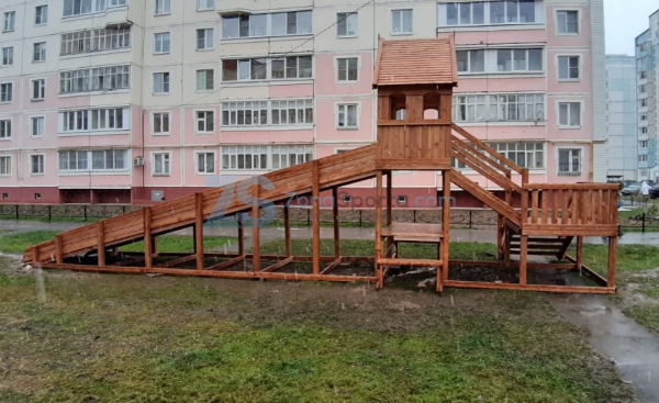 Зимняя деревянная заливная горка Теремок 2 скат 8х1,5м |