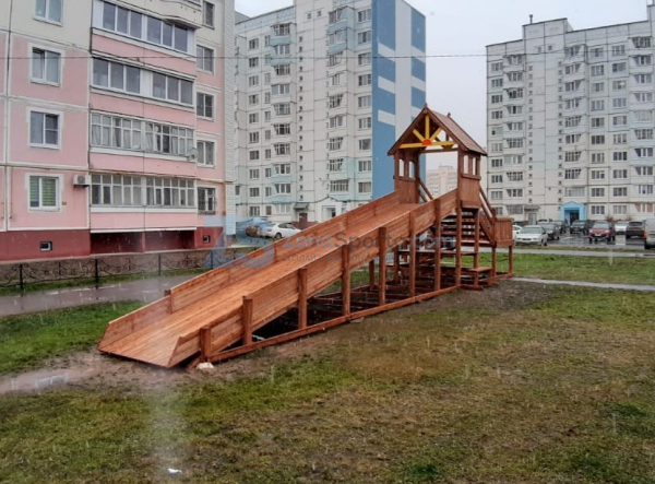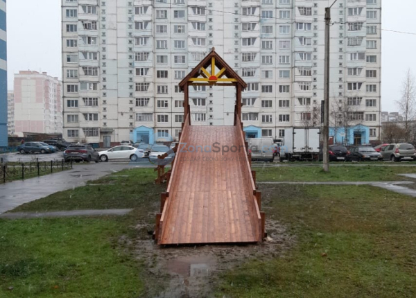 Напишите свое мнение. Зимняя деревянная заливная горка Теремок 2 скат 8х1,5м
